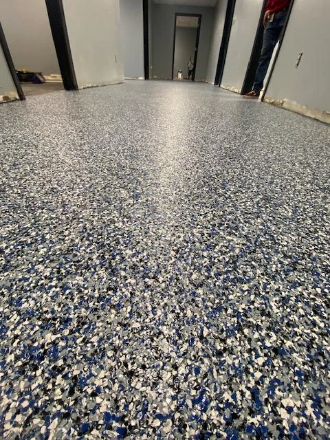 Decorative flake and metallic finishes add depth and visual interest while maintaining industrial strength.